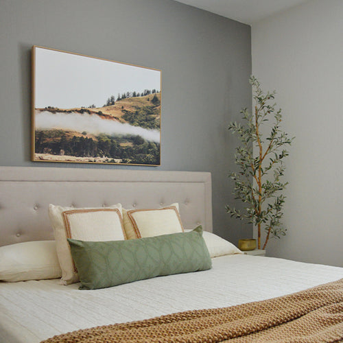 A beautiful home interior room painted in Windy City, the perfect warm gray paint color from Clare. Windy City is a light greige paint color that's beautiful and breezy, just like its namesake! This warm hue looks great in any space.  Shop now.