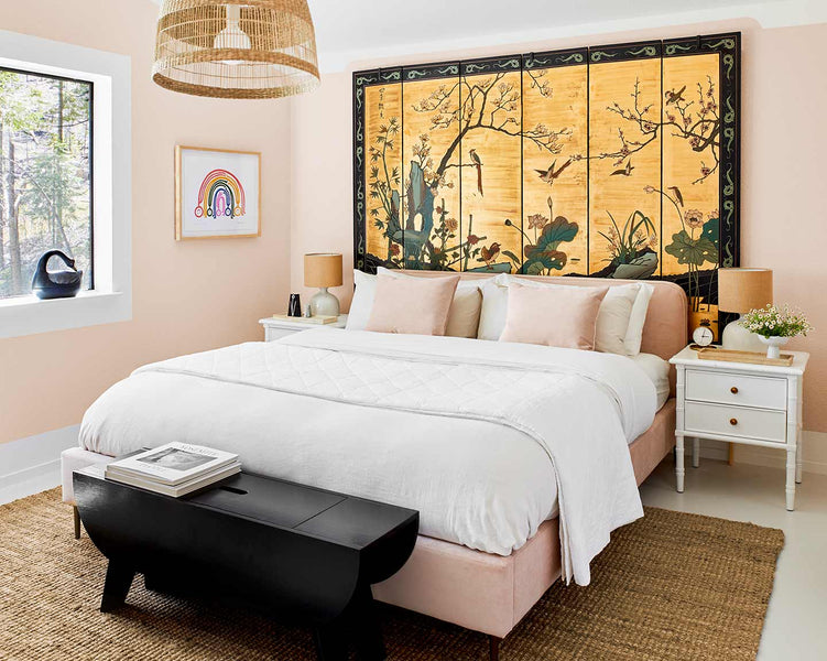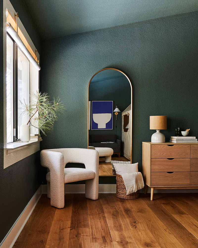 Orlando plays up the curvy, Spanish-inspired architecture of his L.A. home with a clever paint DIY using No Filter on the walls and a contrasting border of faux trim painted in our perfect off-white, Timeless.